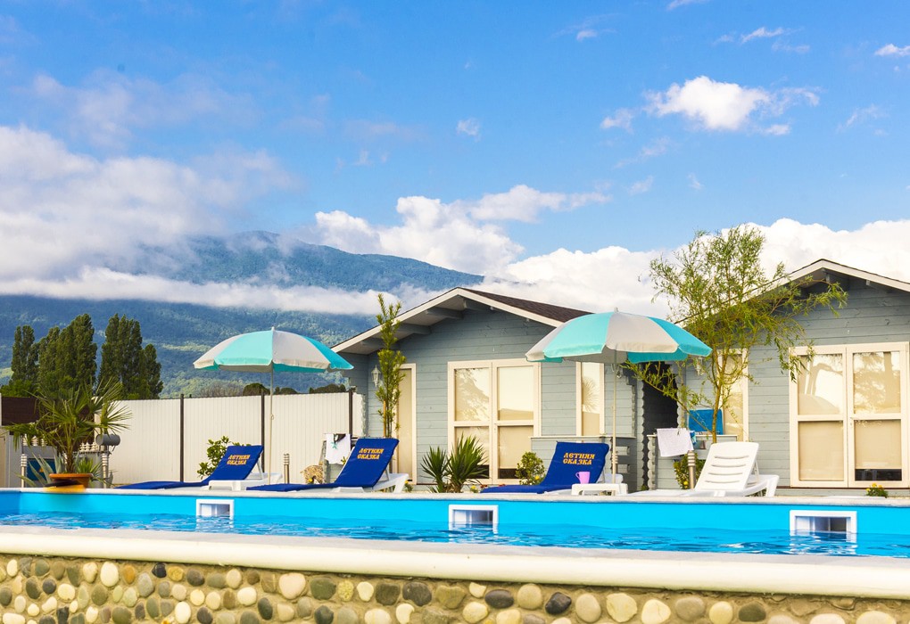 «Летняя сказка» — уютный коттеджный комплекс для комфортного и бюджетного отдыха. Удобно расположен между Пицундой и Гагрой — в поселке Алахадзы. Сезон работы продолжается с мая по октябрь. Отдых здесь спокойный без городского шума и суеты, прозрачное теплое море и мягкий песчано-галечный пляж.