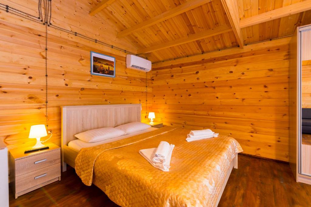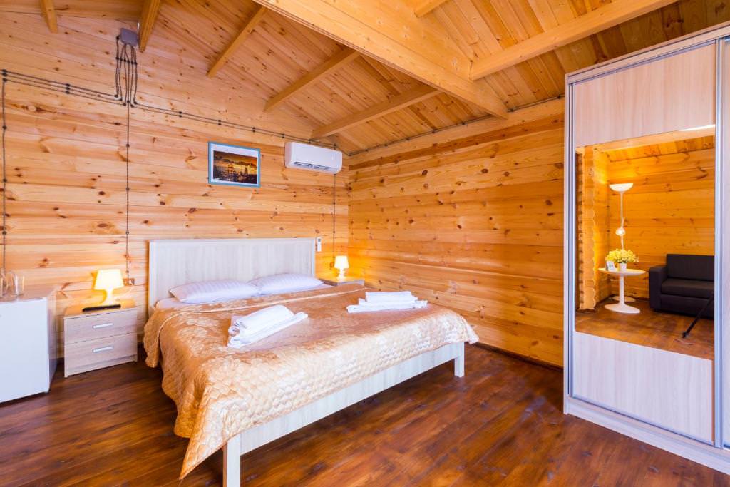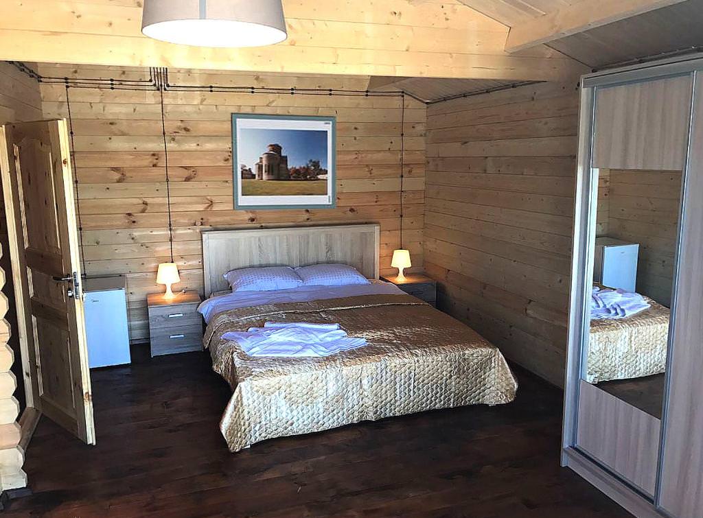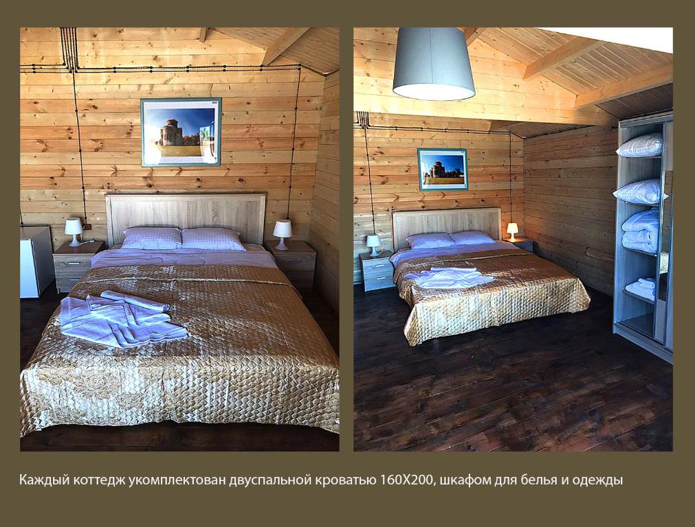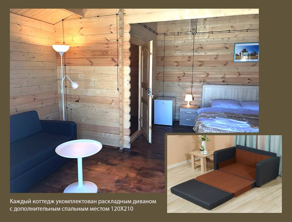 Коттедж предусматривает размещение дополнительного гостя. Общая площадь номера составляет 20 м2. Укомплектован необходимой техникой для комфортного размещения.